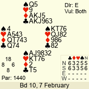 3 NT | E | +1 | -430 | 8 | 10 - 06 | 5 | 10 |