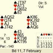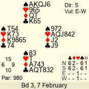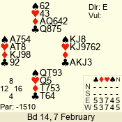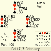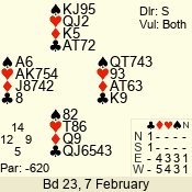 3 NT | E | +1 | -430 | 2 | 05 - 09 | 9 | 5 |