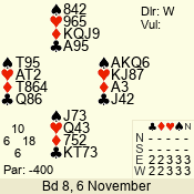 3 NT | S | +1 | 430 | 4 | 04 - 02 | 3 | 4 |