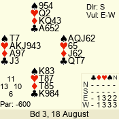 3 NT | S | +1 | 430 | 4 | 02 - 01 | 2 | 2 |