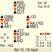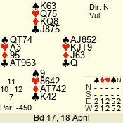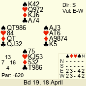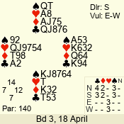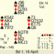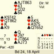| 3 NT | W | +1 | -430 | T | 03 - 01 | 3 | 3 |