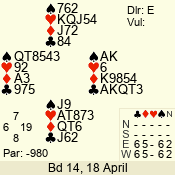 | 3 NT | E | +2 | -460 | 2 | 04 - 02 | 3 | 4 |
