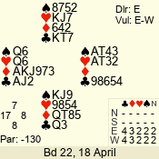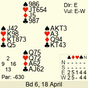 | 3 NT | E | +1 | -630 | K | 04 - 01 | 4 | 4 |