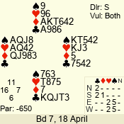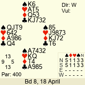 | 3 NT | W | +1 | -430 | 8 | 04 - 03 | 2 | 4 |