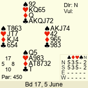 | 3 NT | W | +1 | -630 | 3 | 02 - 07 | 3 | 2 |
