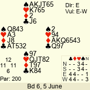| 3 NT | E | +1 | -630 | 6 | 05 - 06 | 7 | 5 |