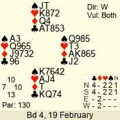 3 NT | W | +1 | -430 | 4 | 08 - 04 | 5 | 8 |