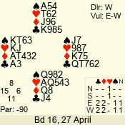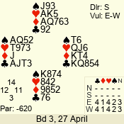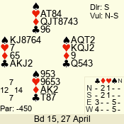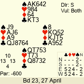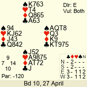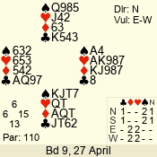 Con | Dc | Res | Score | Ld | Pairs | Rd | Tbl | Sec | 3 N | N | +2 | 460 | | 06 - 11 | 9 | 6 | w |