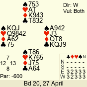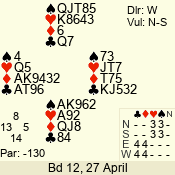 3 NT | S | +2 | 460 | 8 | 13 - 12 | 2 | 13 | w |
