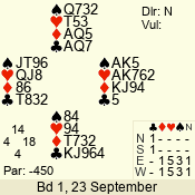 | 3 NT | E | +1 | -430 | 3 | 06 - 04 | 3 | 6 |