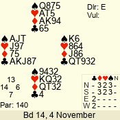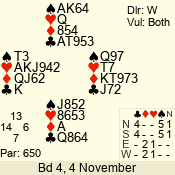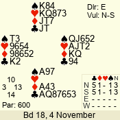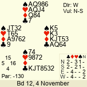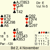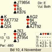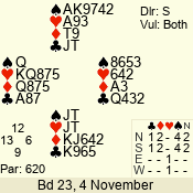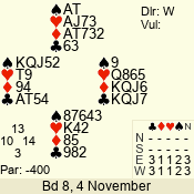3 NT | S | +1 | 430 | 4 | 02 - 04 | 4 | 2 |