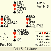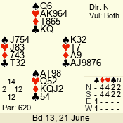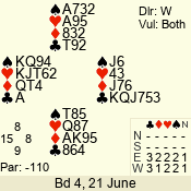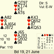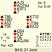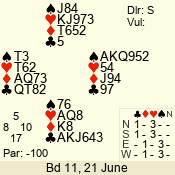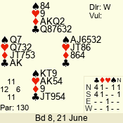 Con | Dc | Res | Score | Ld | Pairs | Rd | Tbl | 4  | S | +3 | 710 | K | 06 - 06 | 1 | 6 |