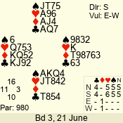 3 NT | E | +1 | -430 | J | 01 - 04 | 5 | 1 |