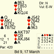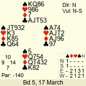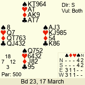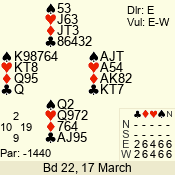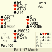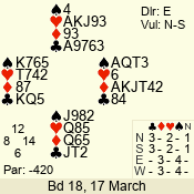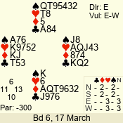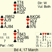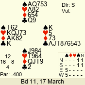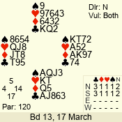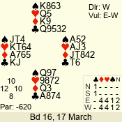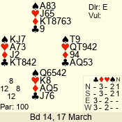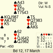 | 3 NT | W | +1 | -430 | 3 | 09 - 01 | 1 | 1 |