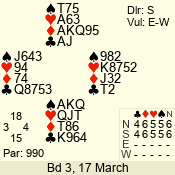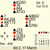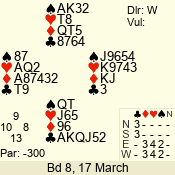 | 3 NT | W | +1 | -430 | 5 | 04 - 02 | 8 | 6 |