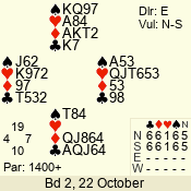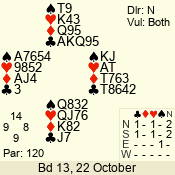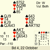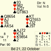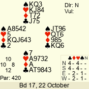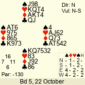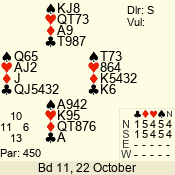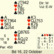Con | Dc | Res | Score | Ld | Pairs | Rd | Tbl | 4  | S | +1 | 450 | A | 03 - 05 | 11 | 3 |