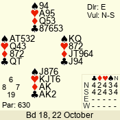 Con | Dc | Res | Score | Ld | Pairs | Rd | Tbl | 3 NT | S | +1 | 630 | 3 | 03 - 09 | 7 | 3 |