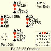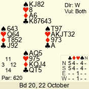 Con | Dc | Res | Score | Ld | Pairs | Rd | Tbl | 6 NT | W | -3 | 300 | J | 04 - 04 | 1 | 4 |