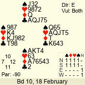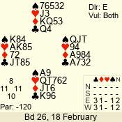 Con | Dc | Res | Score | Ld | Pairs | Rd | Tbl | 3 NT | E | -3 | 150 | J | 10 - 07 | 4 | 10 |