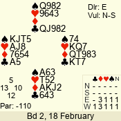 1 NT | S | -2 | -200 | 5 | 13 - 12 | 2 | 13 |