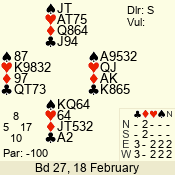 3 NT | S | +1 | 630 | 4 | 07 - 02 | 6 | 7 |