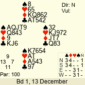 Con | Dc | Res | Score | Ld | Pairs | Rd | Tbl | 3 NT | S | +2 | 660 | 3 | 06 - 05 | 18 | 6 |