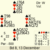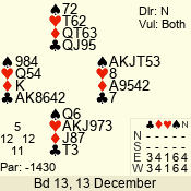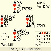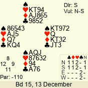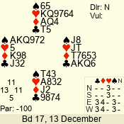 Con | Dc | Res | Score | Ld | Pairs | Rd | Tbl | 3 NT | S | +3 | 490 | 6 | 07 - 06 | 18 | 7 |