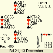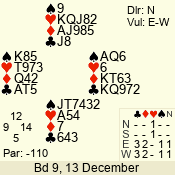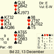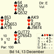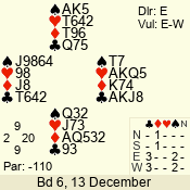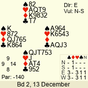 Con | Dc | Res | Score | Ld | Pairs | Rd | Tbl | 2 NT | E | -3 | 300 | 3 | 10 - 07 | 20 | 10 |