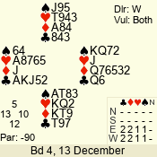 Con | Dc | Res | Score | Ld | Pairs | Rd | Tbl | 4  | E | -3 | 150 | Q | 04 - 12 | 23 | 4 |