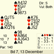 Con | Dc | Res | Score | Ld | Pairs | Rd | Tbl | 2  | N | +2 | 130 | 3 | 03 - 13 | 23 | 3 |