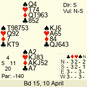3 NT | S | +2 | 460 | J | 03 - 04 | 6 | 5 |