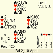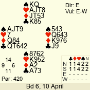 Con | Dc | Res | Score | Ld | Pairs | Rd | Tbl | 4  | S | = | 420 | Q | 10 - 07 | 5 | 4 |
