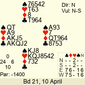 Con | Dc | Res | Score | Ld | Pairs | Rd | Tbl | 4  | S | +2 | 680 | 4 | 04 - 06 | 3 | 2 |