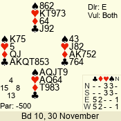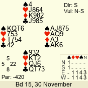 3 NT | E | +1 | -430 | 3 | 09 - 05 | 5 | 1 |