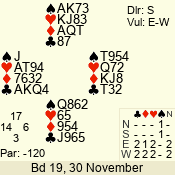 Con | Dc | Res | Score | Ld | Pairs | Rd | Tbl | 3 NT | S | = | 600 | 5 | 09 - 07 | 7 | 1 |