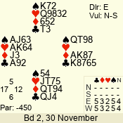 Con | Dc | Res | Score | Ld | Pairs | Rd | Tbl | 4  | S | +1 | 450 | 6 | 02 - 03 | 5 | 5 |