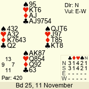 Con | Dc | Res | Score | Ld | Pairs | Rd | Tbl | 3 NT | N | +1 | 630 | 5 | 07 - 11 | 8 | 7 |