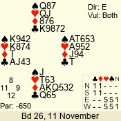 Con | Dc | Res | Score | Ld | Pairs | Rd | Tbl | 3 NT | S | +1 | 630 | T | 11 - 05 | 7 | 11 |