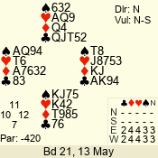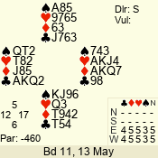 | Con | Dc | Res | Score | Ld | Pairs | Rd | Tbl | 4  | N | +2 | 480 | 7 | 02 - 04 | 7 | 2 |