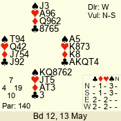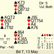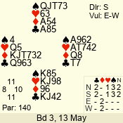 | Con | Dc | Res | Score | Ld | Pairs | Rd | Tbl | 3  | E | = | -140 | 6 | 05 - 07 | 7 | 5 |