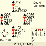 | Con | Dc | Res | Score | Ld | Pairs | Rd | Tbl | | 2 N | S | = | 120 | 3 | 04 - 05 | 8 | 4 |