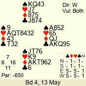 | Con | Dc | Res | Score | Ld | Pairs | Rd | Tbl | 4  | S | +1 | 650 | 4 | 04 - 06 | 7 | 4 |