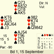 | 3 NT | S | +1 | 630 | 2 | 05 - 01 | 5 | 5 |