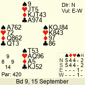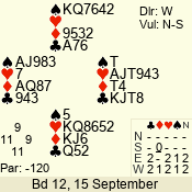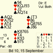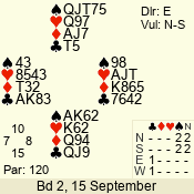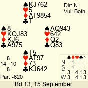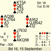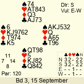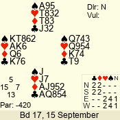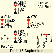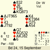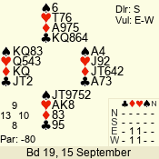 | 3 NT | W | +2 | -660 | 2 | 09 - 07 | 3 | 9 |