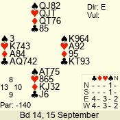 | 3 NT | E | +3 | -690 | 3 | 10 - 09 | 2 | 10 |