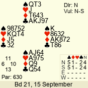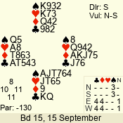 | 3 NT | S | +1 | 630 | 2 | 01 - 03 | 9 | 1 |
