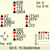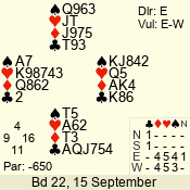 | 3 NT | S | +1 | 630 | 5 | 04 - 07 | 8 | 4 |