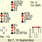 | 3 NT | S | +1 | 630 | 2 | 07 - 06 | 2 | 7 |