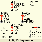 | 3 NT | W | +3 | -690 | T | 08 - 05 | 4 | 8 |