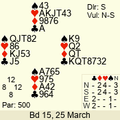 3 NT | S | +1 | 630 | 7 | 05 - 07 | 12 | 5 |